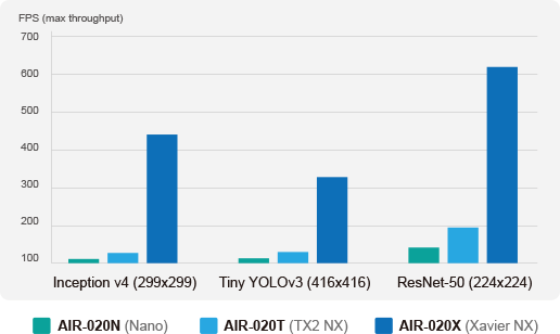 어드밴텍의 AIR-020 시리즈는 NVIDIA Jetson Xavier NX, Jetson TX2 NX 및 Jetson Nano를 활용하여 강력한 AI 추론 기능을 제공하며 고객은 AI 프로젝트 개발 수요에 맞는 솔루션을 선택할 수 있습니다.